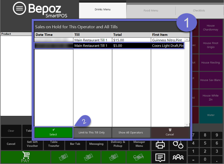 - Once an Operator has logged on to a SmartPOS Workstation, complete the following steps to retrieve a Held Transaction