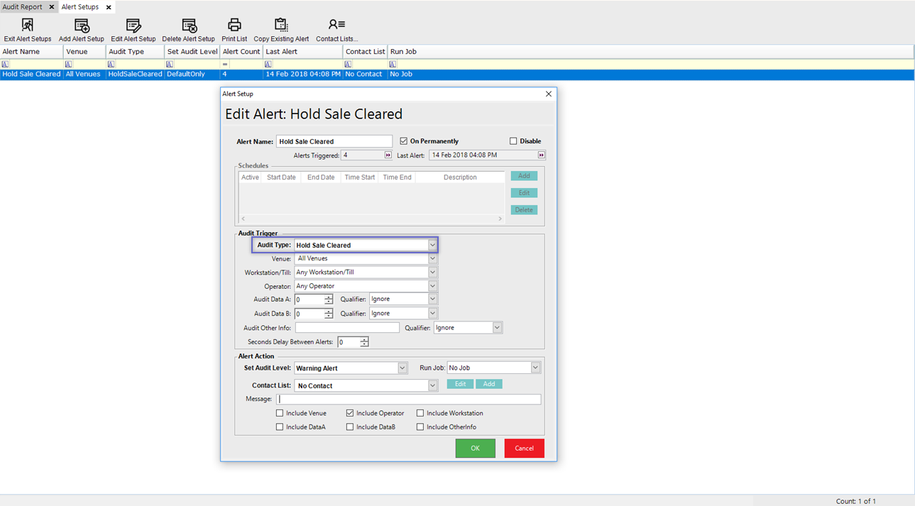 - Optionally, an Alert can be set up to trigger whenever a Hold Sale Cleared Audit is created