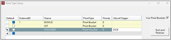 Note: Although the basic IGT interface supports Multiple Points Buckets it does NOT support PointType Vouchers.