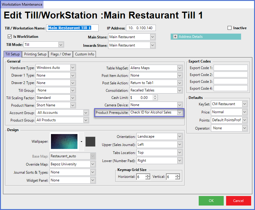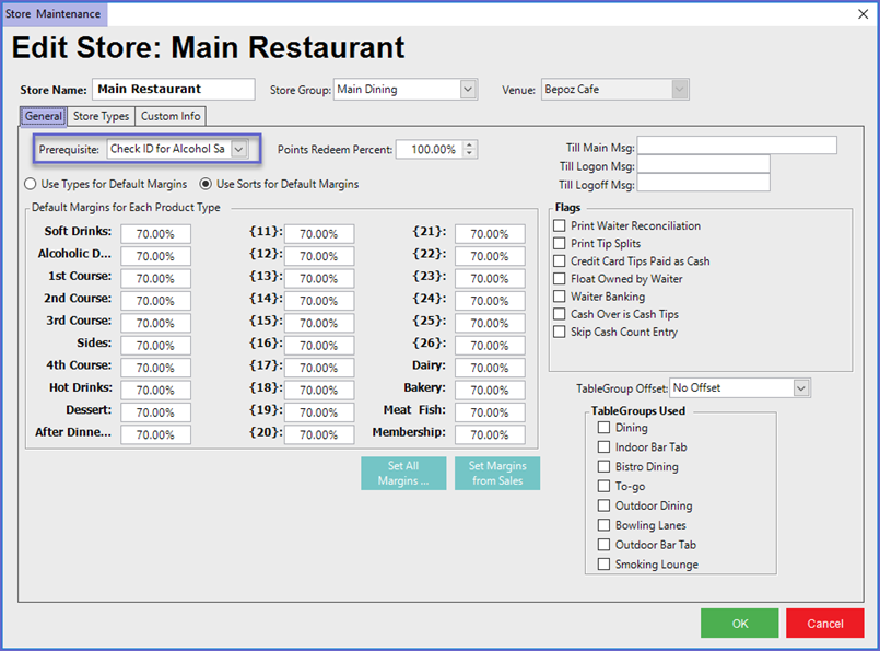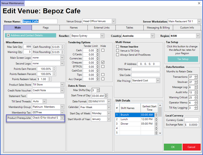 - This will display the Prerequisites on every Workstation/Till available in the Venue for every Transaction
