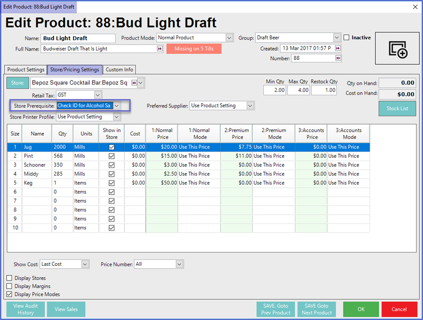 - When this Product is sold at any Venue in any Store, the Prerequisites will be activated