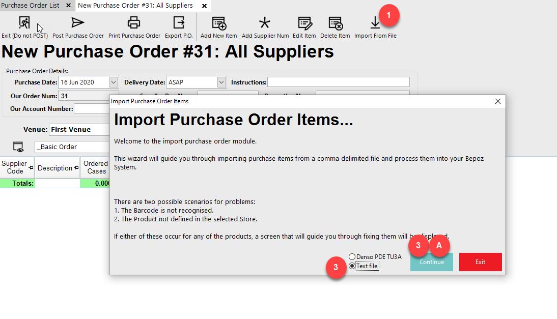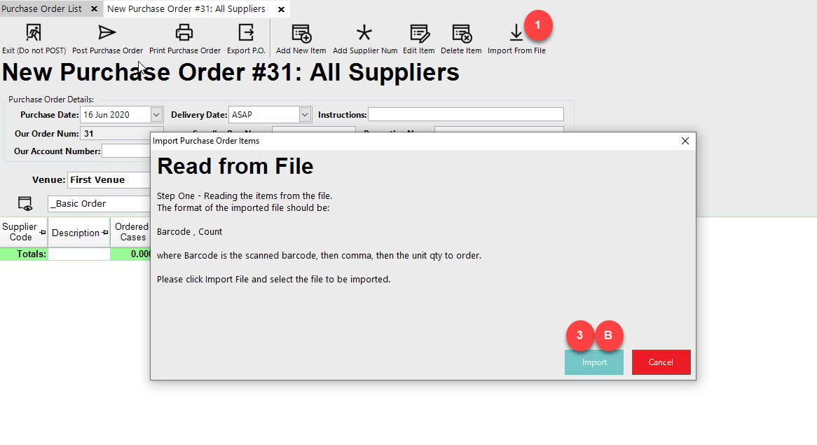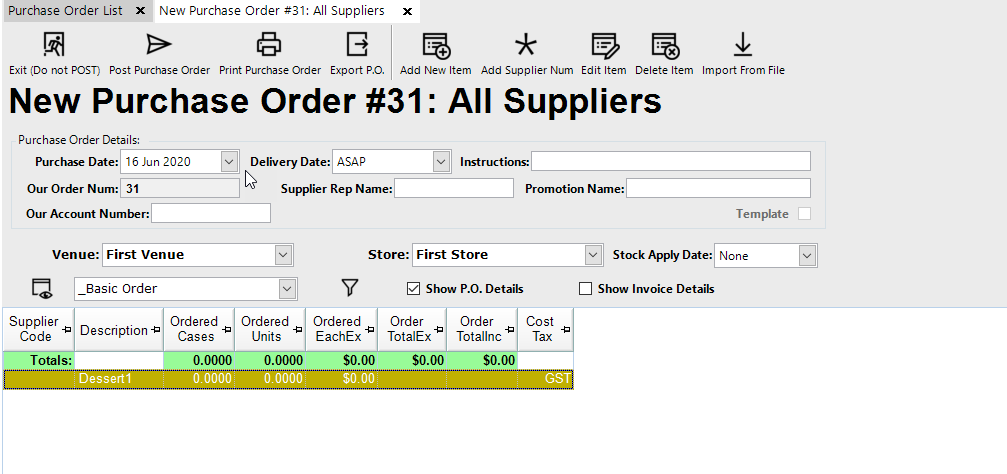 Click on the Purchasing & Receiving option which will open a window titles Purchase Order List