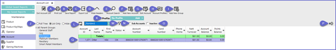 Even though the Account List is a live view of the Database, it is treated as a report with all the same Report Tools: