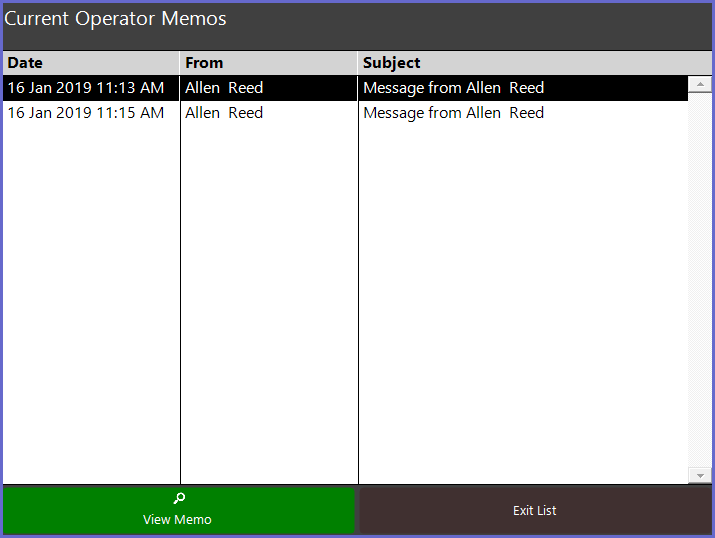 - The Operator can view a Memo either by double-tapping on the desired Memo or by highlighting and tapping on the View Memo button
