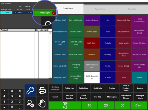 - When the "Flat" Till Scheme is being used Globally throughout the Organization and a Workstation's Design is configured to show the Operator Details in the SmartPOS Widget Panel, a Messages button will appear in the panel