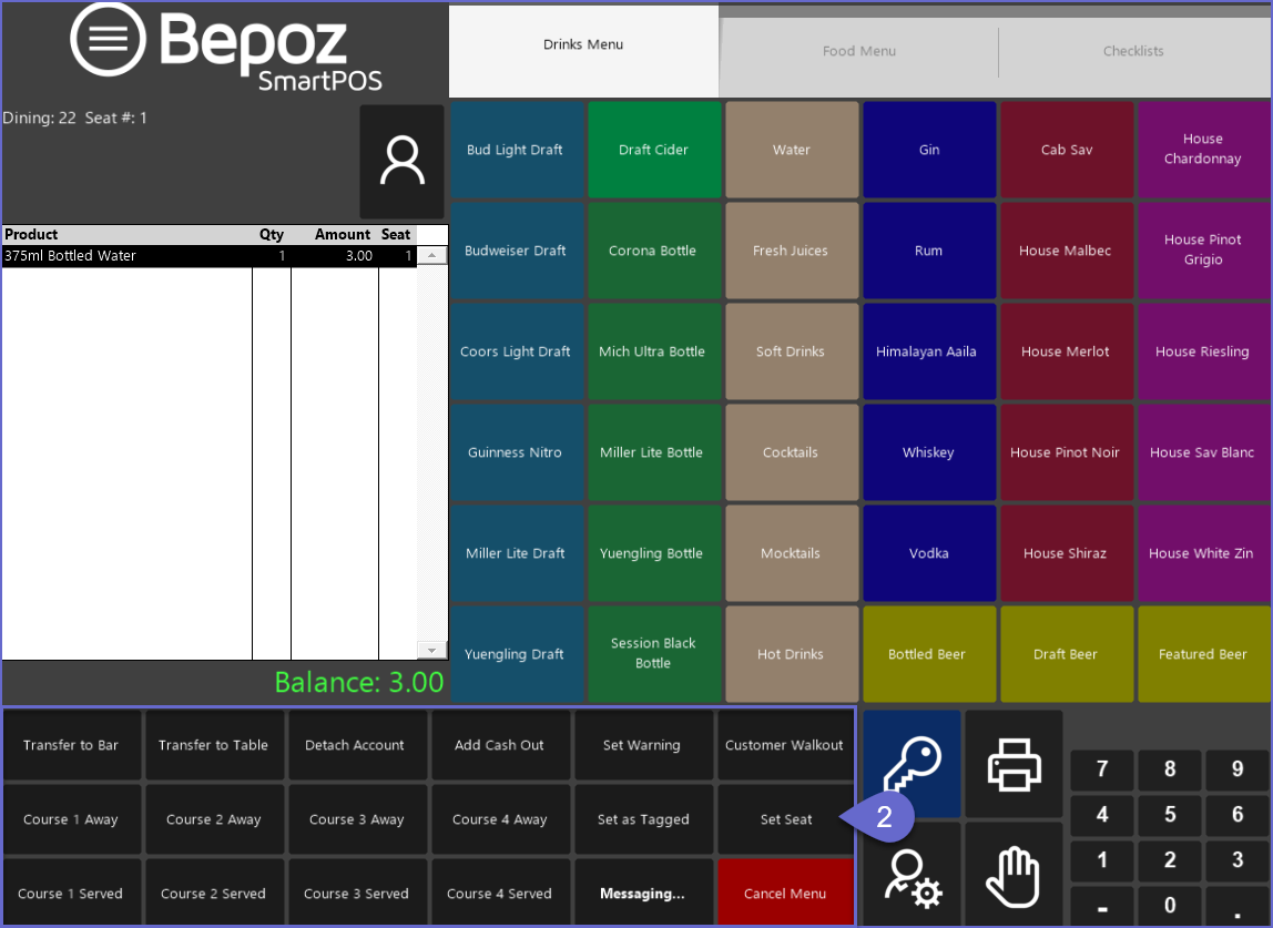 Basic Table Till Functions include Table Transfers, adding Seat Numbers, setting a Table Limit, guest Walkout, etc. Some of the more Advanced Table Functions include marking Courses Away, Courses Served, Table Item Details, adding Receipt Comments, etc.