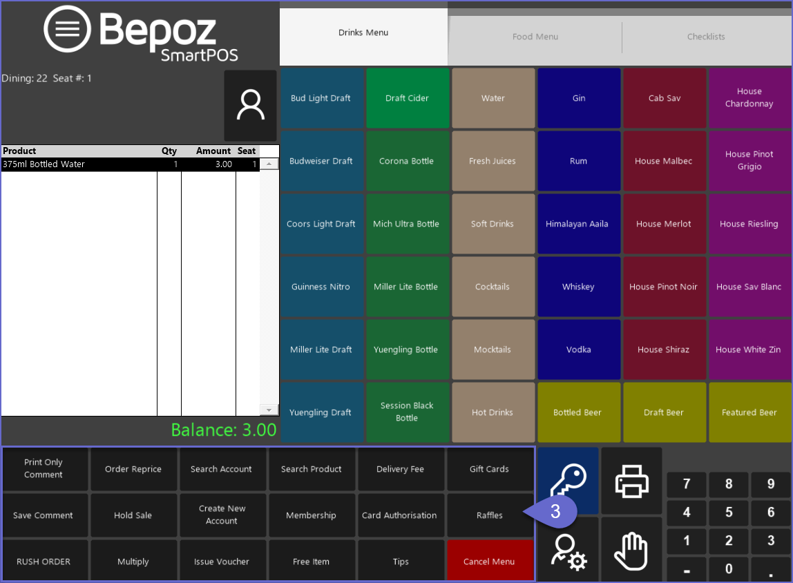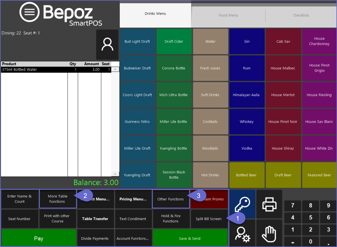 • Alternatively, a Table Function Panel can be accessed via a separate Till Function button if one is configured
