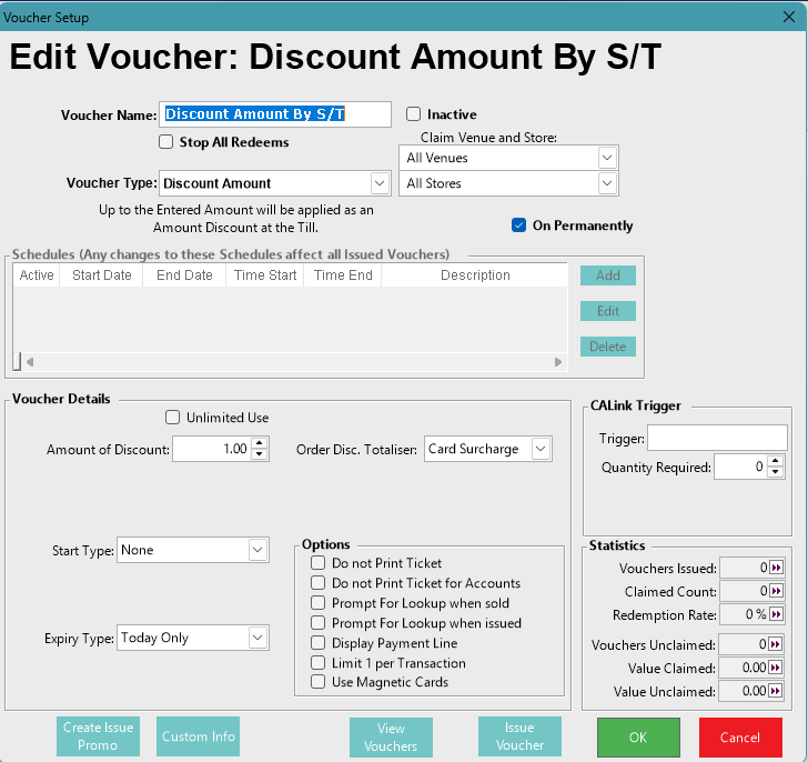 - Use this drop-down to select one of the System's Discount Totalisers; this will nominate the Totaliser the Voucher's Discount will revert to