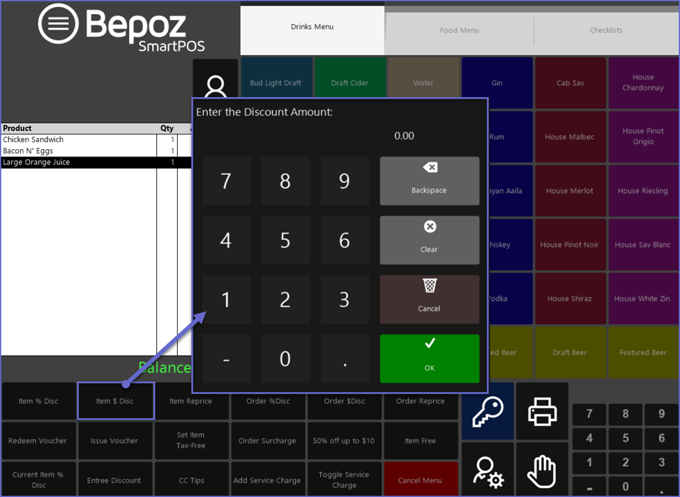 Manual Discounts requires Operators to manually enter the Discount for each individual Transaction as they are not pre-determined in BackOffice.