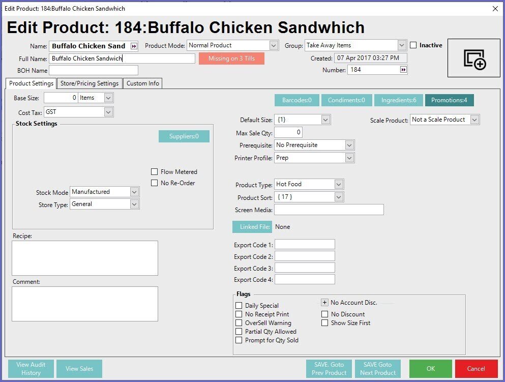• The sauce could be configured as Auto-Manufactured as it may only be Manufactured along with the sandwich