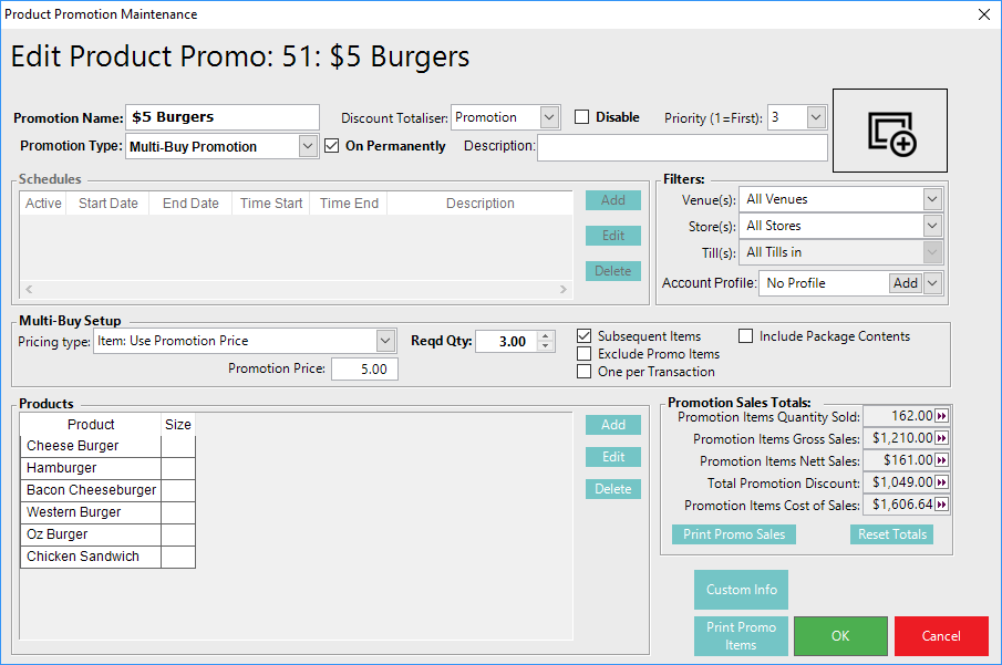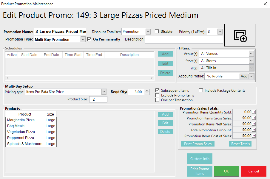 - This Pricing Type is used to set up Promotions where a Required Quantity must be reached for two (2) or three (3) different sets of Product; after all Required Quantities have been reached, the designated Discounts will be applied to the applicable Products