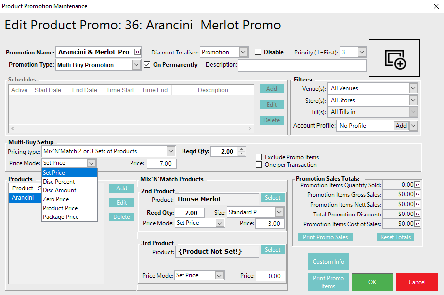 - Select from Set Price, Disc Percent, Disc Amount, Zero Price, Product Price, or Package Price