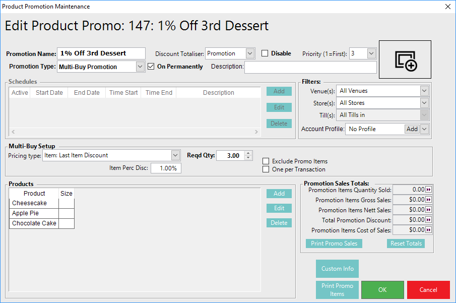 - When the Required Quantity is met and the Promotion is triggered, this is the Discount Percent that will be applied to only the Last applicable Product in the Transaction