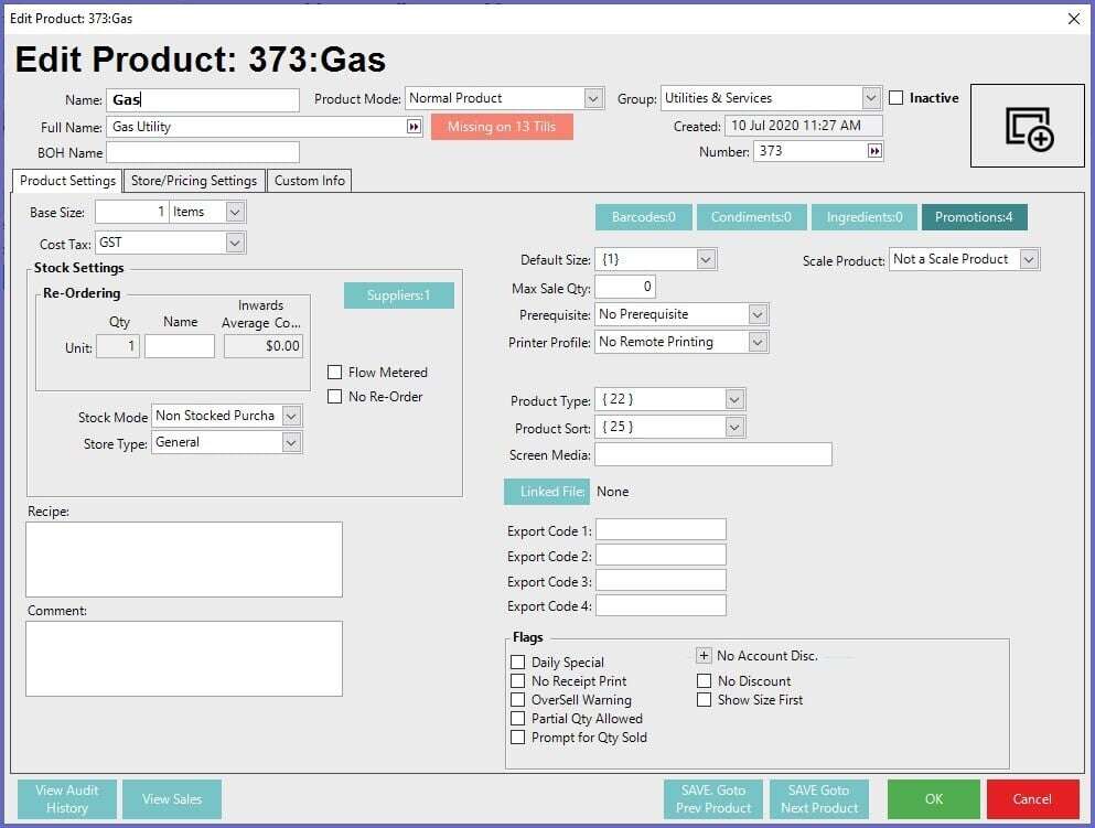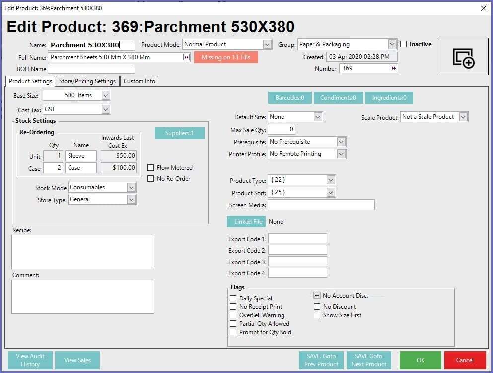 - Take-away containers & bags (although these may be managed as Stocked Products and included as ingredients for a Non-Stocked or Manufactured Product)