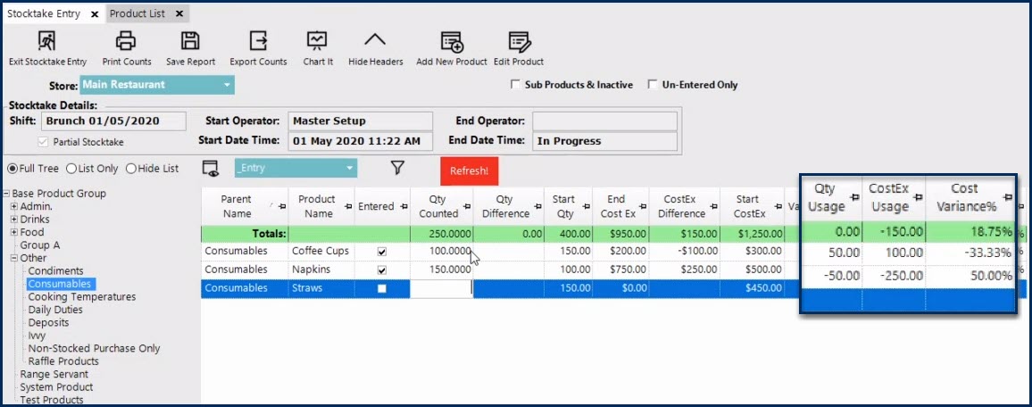 - An incorrect amount has been counted and/or entered for the Period's ending Stocktake