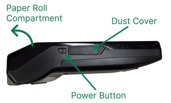 When the device is removed from the charging dock, or is not charging via the USB-C port beneath the dust cover, the screen will turn off to conserve battery power. Pressing the power button once briefly will wake the device from sleep mode. While in sleep mode, the device can still receive payment calls from its integrated parent hardware.