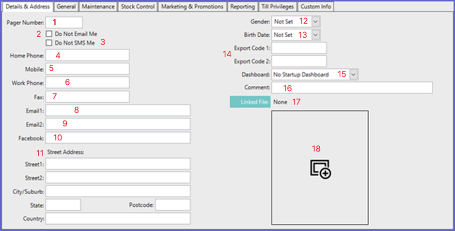 This tab also contains some other Operator details such as Export Codes, Linked File, and a photo.