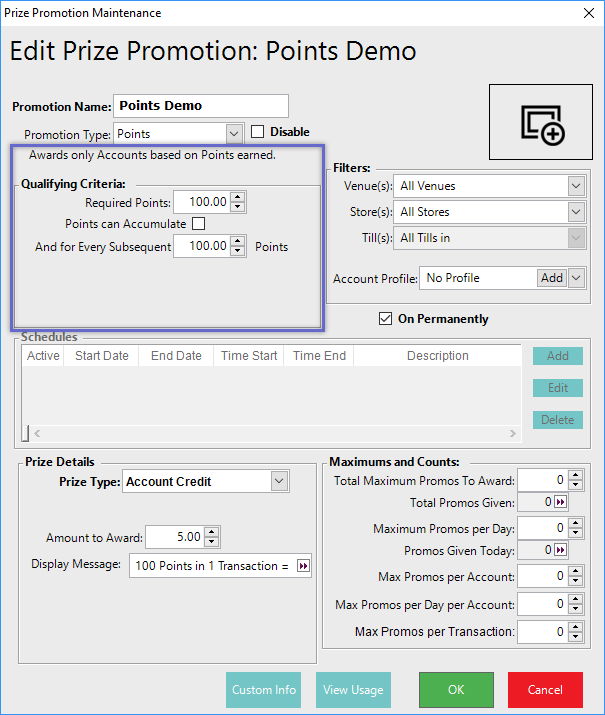 - There are other options to allow Points to accumulate, as well as setting subsequent Points Required after meeting the first criteria