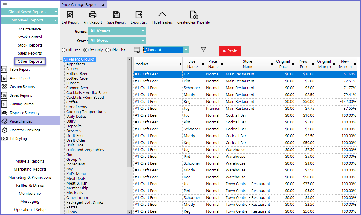 - This information is generated when the Price of Products is Changed via Product Maintenance > Store/ Pricing Settings Tab or via SmartPOS
