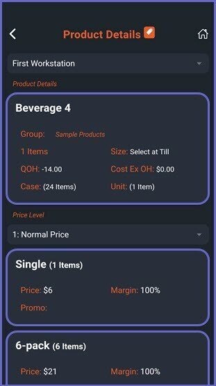 • Under the selected PriceMode, the Price Levels will be displayed for the Operator to do a Price Check of the selected Product
