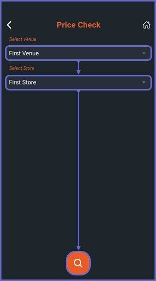 • This will open the Price Check home screen, proceed to select a Venue and Store to check the price of a Product