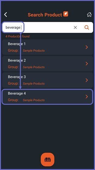 • Proceed and search for a desired product by typing the product name or by using the mobile Barcode Scanner option at the bottom of the screen