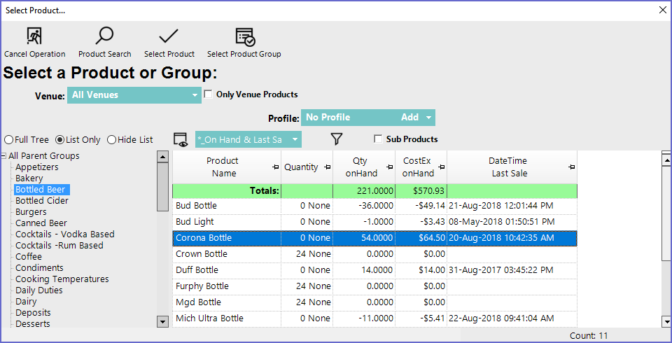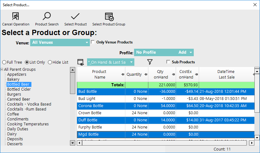 - By double-clicking on either a Group or a Product, that Group or Product will be selected (same goes for KeyList, Sort, Type, etc.)