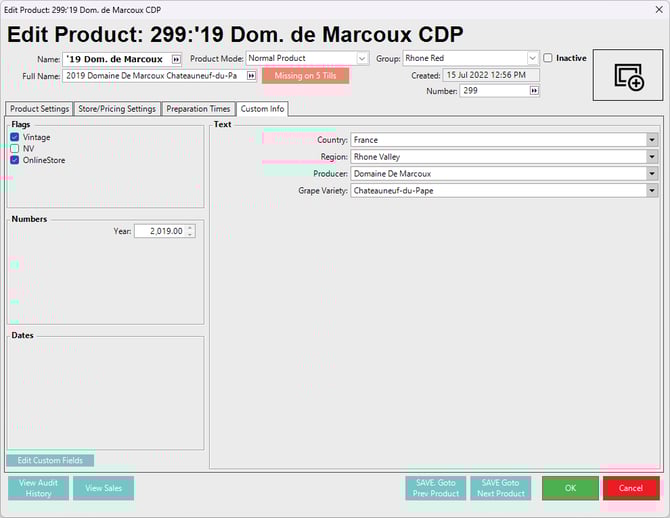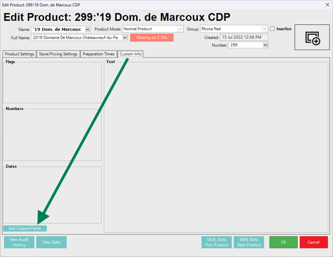 Custom Info fields can be useful when Products need additional classification beyond the standard Product fields, such as internal reporting values, operational categories, Product attributes, or POS grouping requirements.