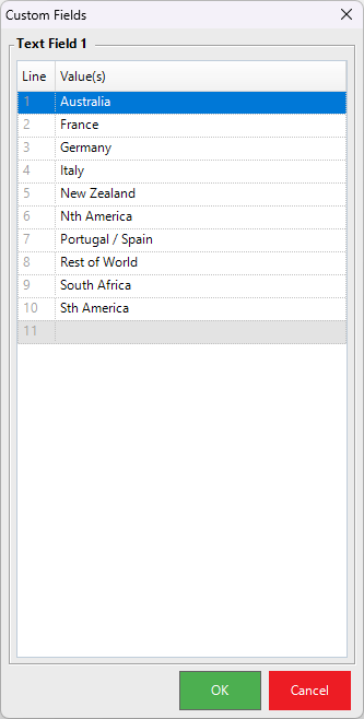 | Text Fields | Text Fields can be added to record additional Product information. Text Fields can also include a list of selectable values. Up to 20 Text Fields can be customised. |