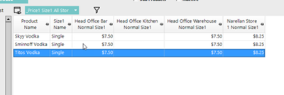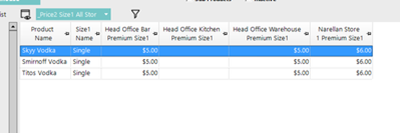 | Price1 Size1 All Stores |