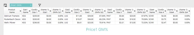- Price Number 1 GM% for Size 1