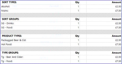 • Drink = £5.00 (sort = beverage / Type = drink)