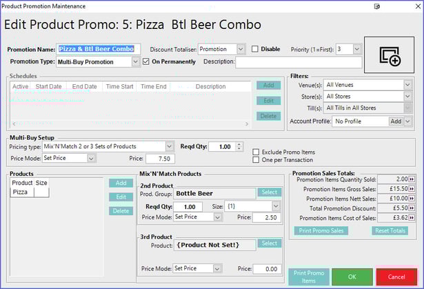 • If more detailed reporting or control over the revenue split is required within the package, then the Mix'N'Match Promotion type should be chosen
