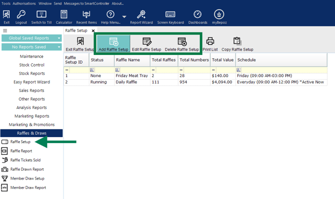 Raffle Setup Configuration in bepoz BackOffice