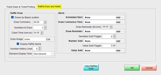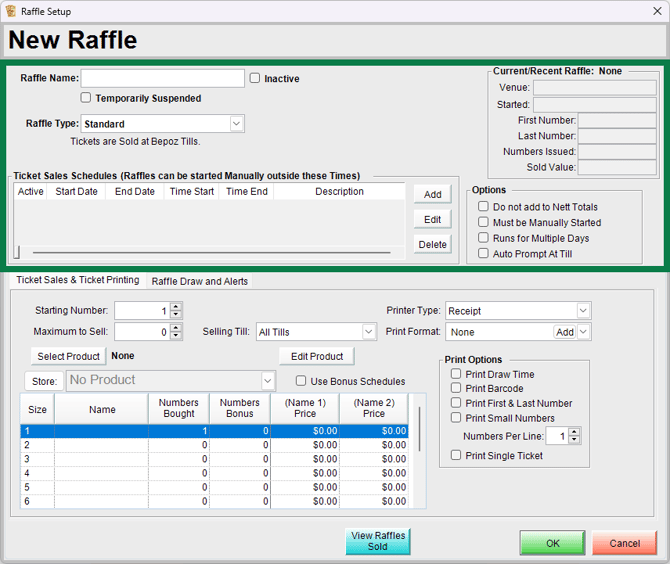 This opens the Raffle Setup window (see image below).