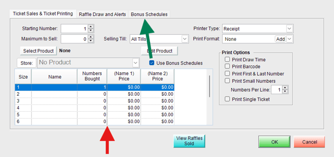 Enter the quantity of bonus raffle numbers issued when the ticket is sold.