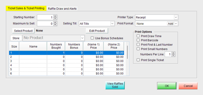 If this is set, a single till must be selected for the raffle.2.b - Maximum to Sell