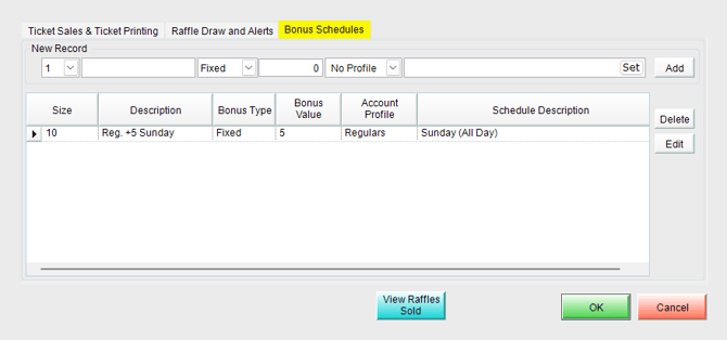 Click OK to save the raffle setup.