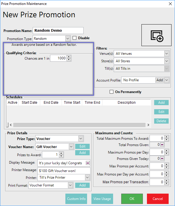 This article covers the 'Random' Promotion Type and the Qualifying Criteria.