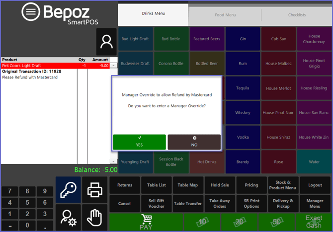 When proceeding with the Refund Payment, a Manager Override will be required if the logged on Operator does not have the authorization to Refund a Transaction