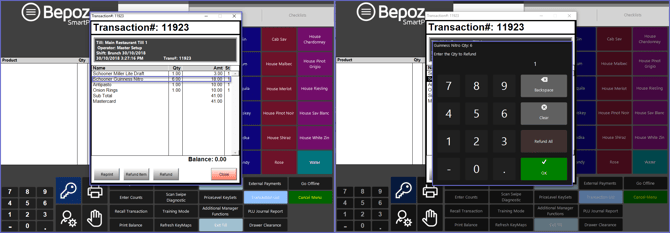 - The Refunded Product will be displayed in the Transaction Window with the amount returned
