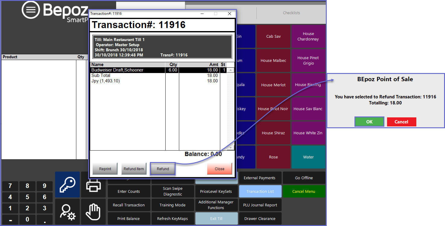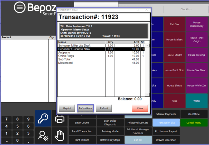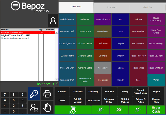 Refunding Tables - From Version 4.7 its now possible to refund Table Transactions including Bistro. Follow the above processes after having selected the Table transaction from the list