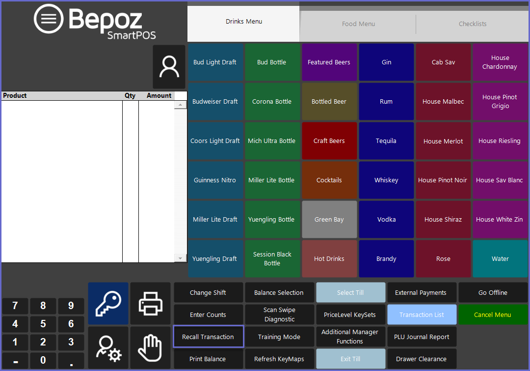 - To select a Transaction to Reprint or Refund, the Operator will first need to select the Recall Transaction function button from the Manager Function Panel