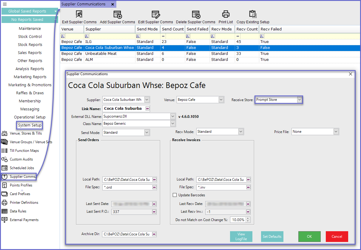 • There is an option when configuring within the Supplier Communications Menu – within the Receive Store drop-down list called "Prompt Store"