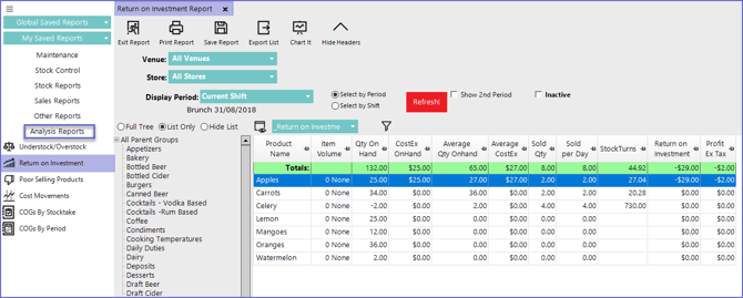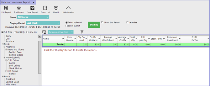 - Select Return on Investment Report which will open a new ROI Report Window