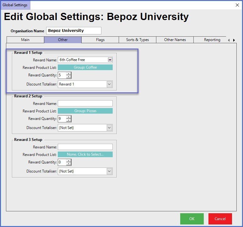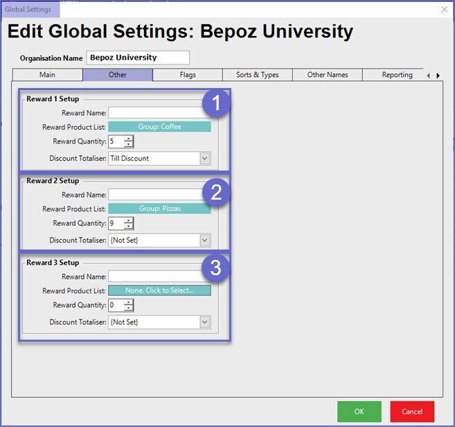 - As rewards are a Global Setting, these must be configured within the Global section of BackOffice