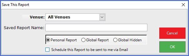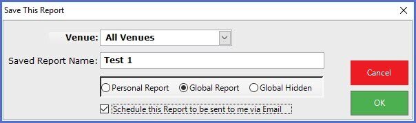 - To Save a Report without Scheduling it to be sent via Email, simply click OK and the Report will be saved to the corresponding drop-down menu based on the Report Type that had been selected