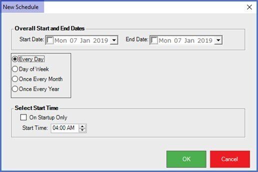 - Set the Schedule for the report to be emailed on and select OK, or select Cancel to not set a Schedule