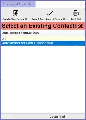 - Select Create New Contact List to create a new Contactlist or Select Auto Report Contactlist as required