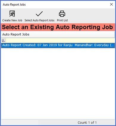 - Click OK and a Prompt will appear to select an existing Auto Report Job